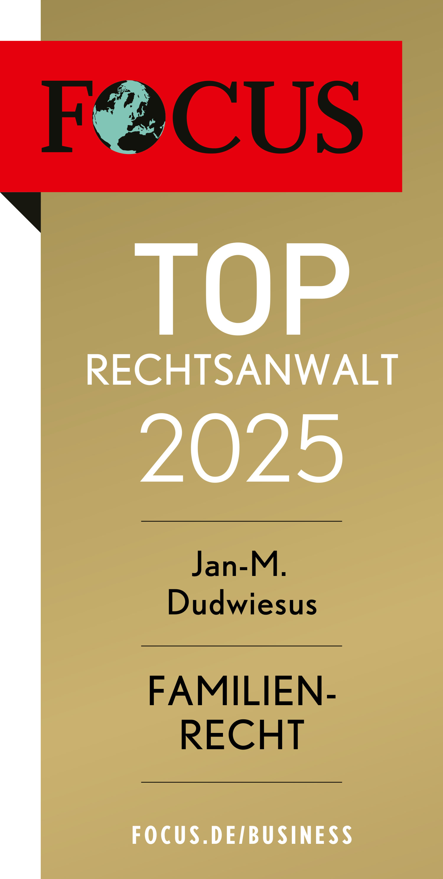 Im Jahre 2021, 2022, 2023 und 2024 wurde ich von dem renommierten Nachrichtenmagazin FOCUS in die Liste Deutschlands Topanwälte aufgenommen und im Familienrecht entsprechend empfohlen. *